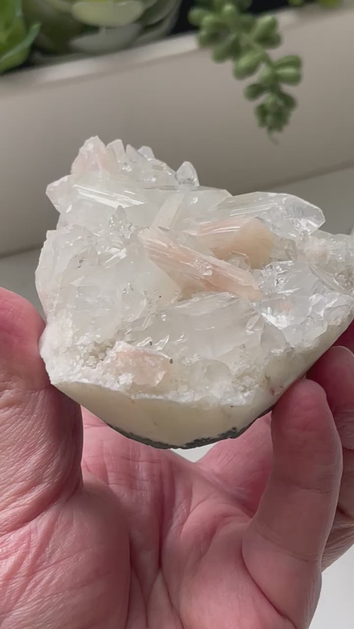 Cute Apohyllite cluster with super soft and lovely energy. If you're looking for the perfect crystal gift, this is it. Rose gold stand not included but do display this beauty with any of our cluster stands in the altar section.