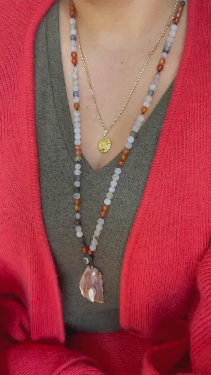 Chic Agate and Mother of Pearl necklace to enhance confidence. Self acceptance. Enhance energy protection. Feminine energy. Gifts for her