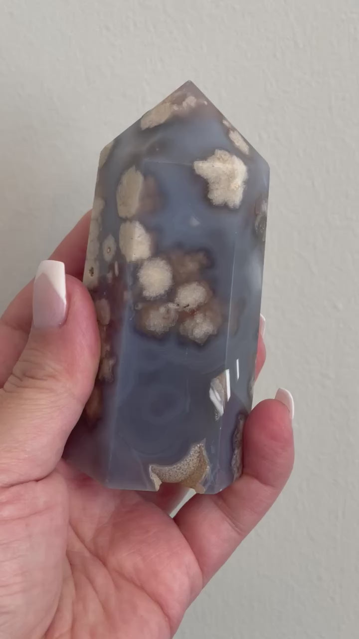 Black Flower Agate tower from Madagascar. Medium size tower full of Agate flowers.