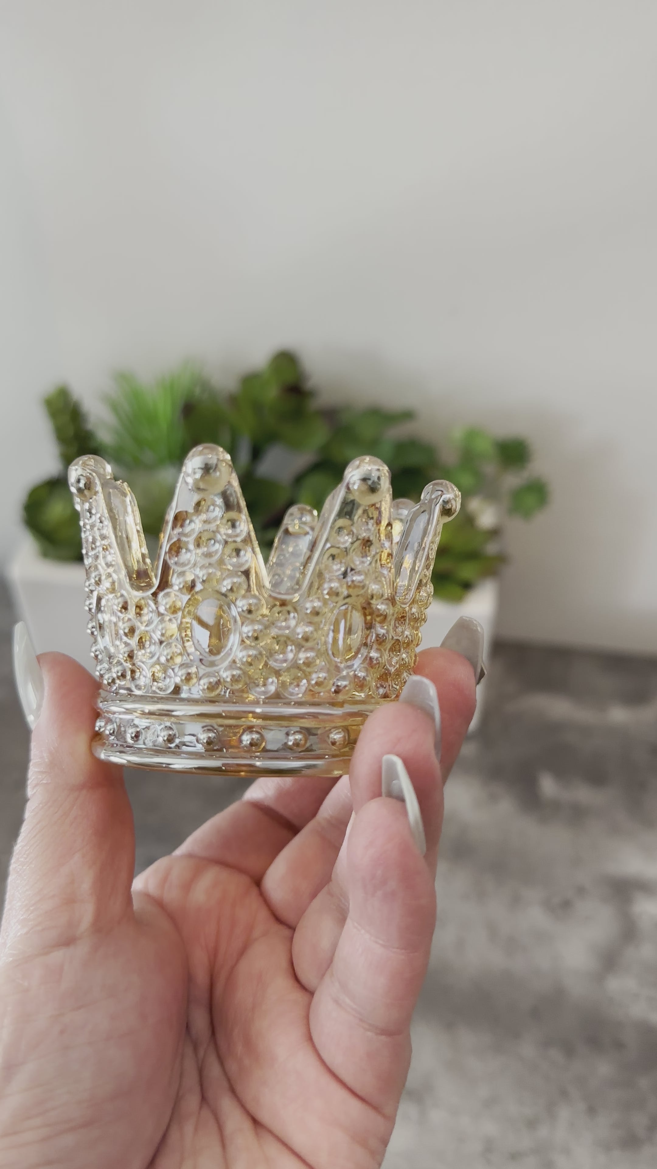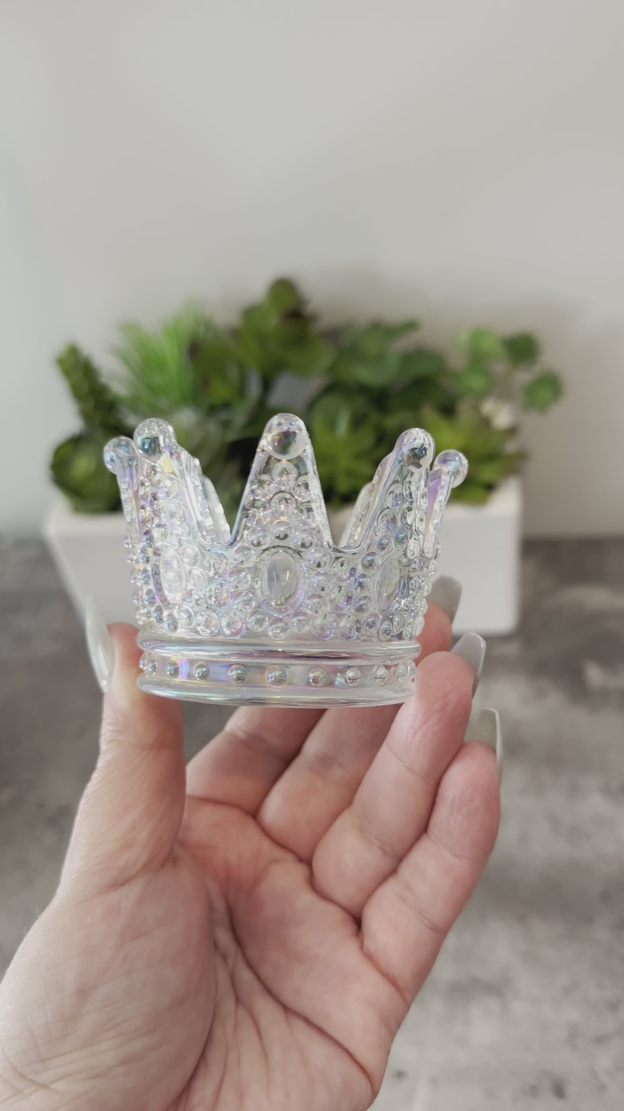 What better way to honor your precious crystal or stone spheres than to have them sit on these gorgeous crown-shaped stands. These stands are made of sturdy, and coated to have that beloved Aura look loved by so many crystal collectors. These sphere displays can hold a wide variety of sphere sizes, from small to extra large. For reference, the spheres shown range from 2.5 inches to over 3inches. I use these beauties to display my 3.5 to 4 inches spheres and they look amazing! No restock expected, so get yours before they're all gone! All crystal spheres shown in this listing are not included, but do browse the sphere section for available spheres available for purchase.