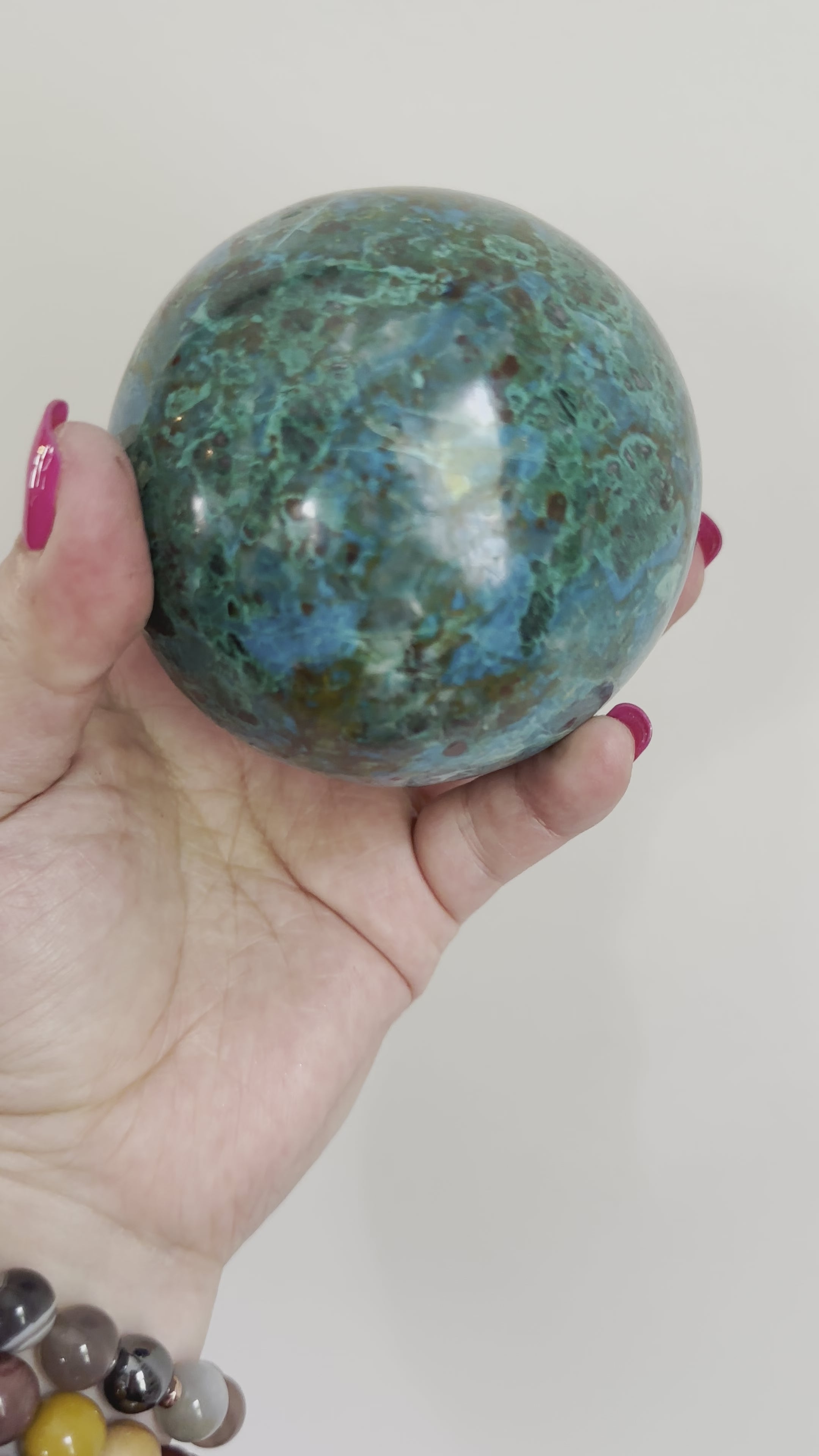 High Quality Large Chrysocolla sphere from Peru. 1lb 11.5oz.