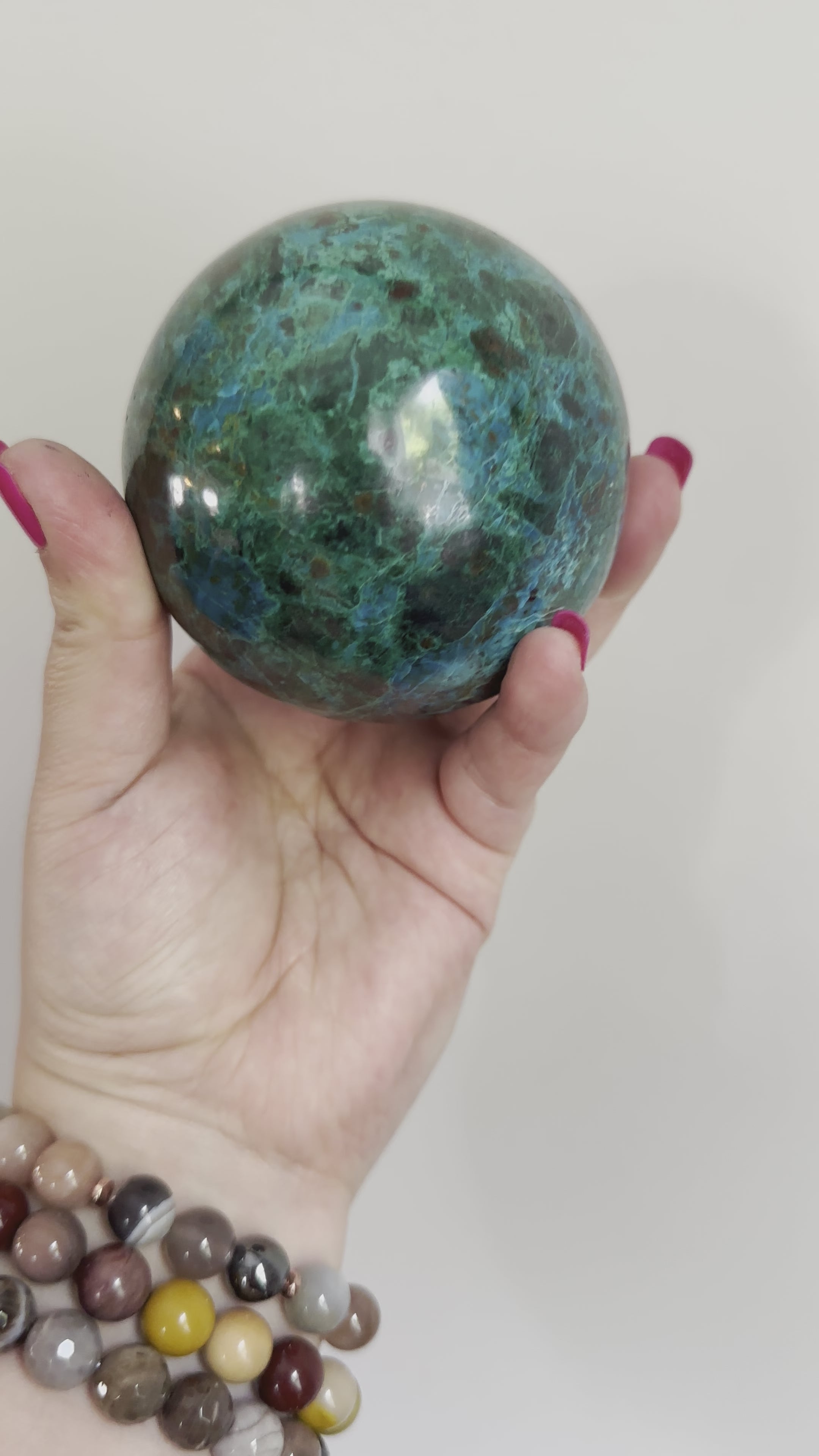 High Quality Large Chrysocolla sphere from Peru. 1lb 15oz.