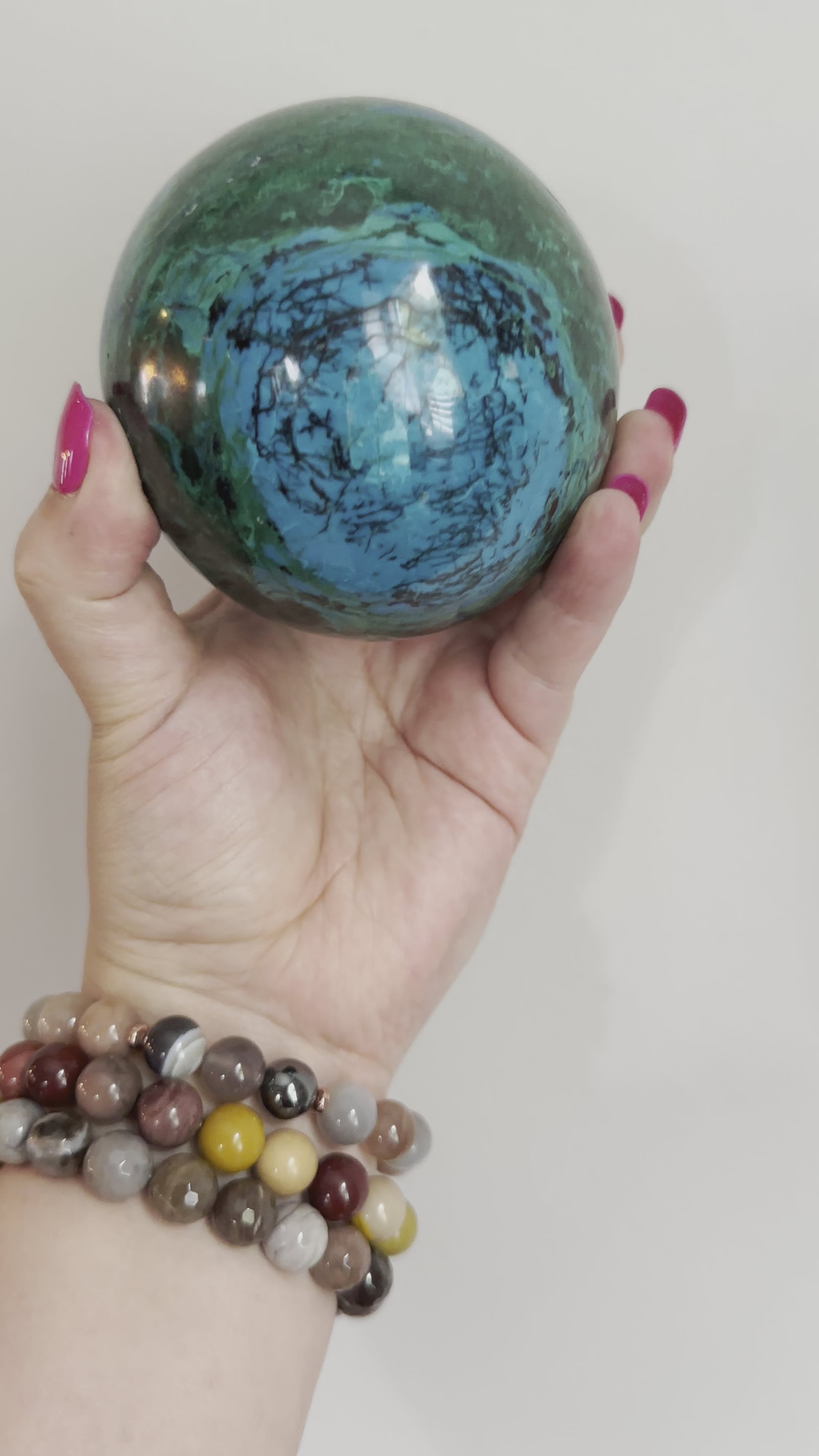 High Quality Large Chrysocolla sphere from Peru. 2lbs 6.7oz.