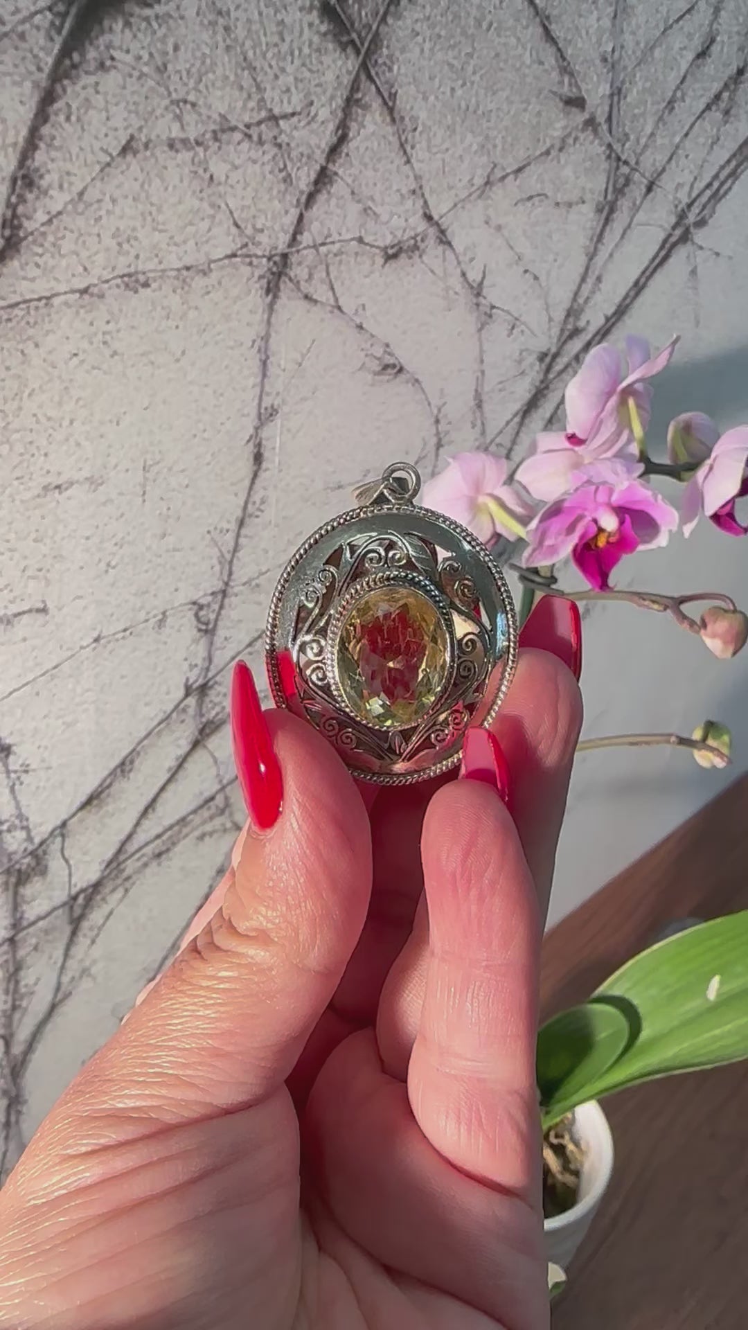 Large hand-crafted Sterling Silver Pendant with Genuine Citrine gemstone.