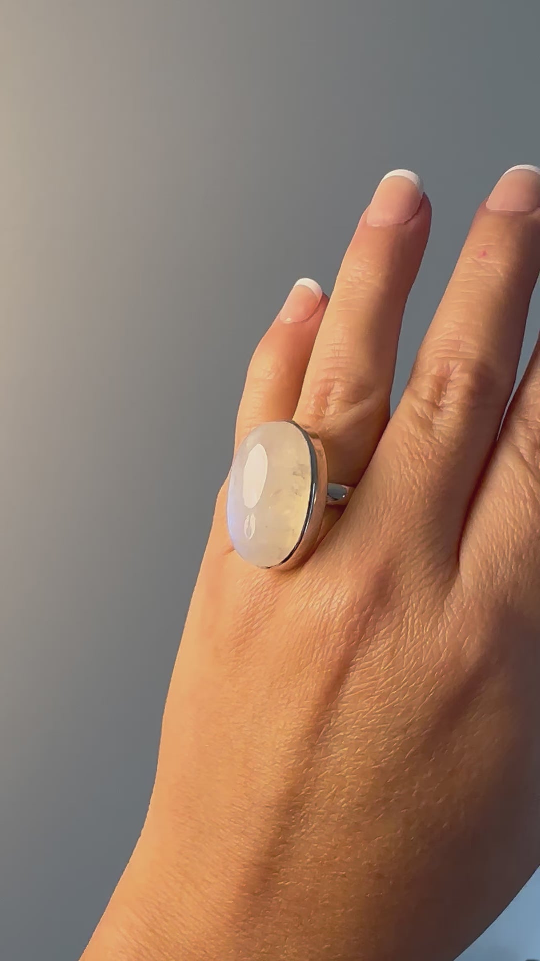 Moonstone Adjustable Silver Ring in Oval-mounded shape.